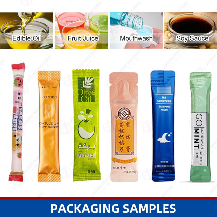 The magnetic pump multilane liquid packaging machine is suitable for automatic packaging of various liquid materials, such as vegetable oil, coconut oil, olive oil, soy sauce, fruit juice, ice popsicle, liquid coffee, creamer, plant enzyme, laundry detergent, mouthwash (oral rinse), hand sanitizer, saline, bleach, etc.