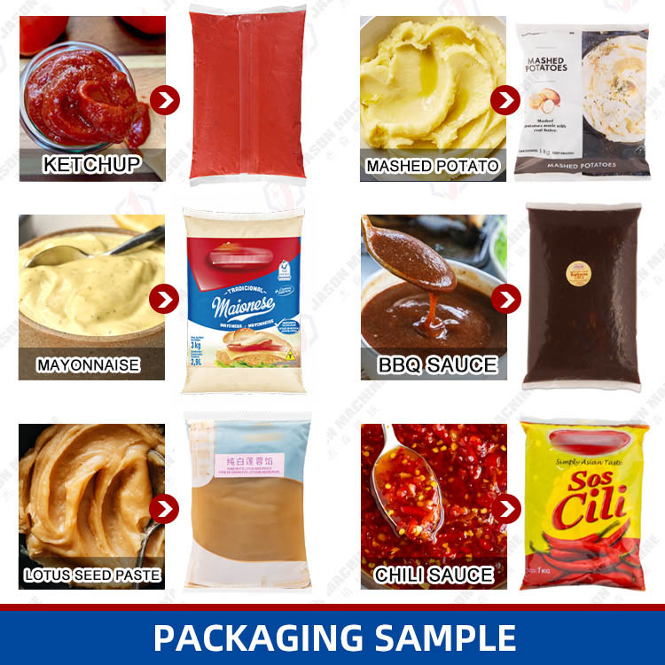The vacuum liquid packing machine is suitable for the packaging of liquid and pasty materials in food, daily necessities, medicine, agriculture and other industries, such as chili sauce, tomato sauce, pasta sauce, tartar sauce, mayonnaise, basil sauce, jam, milk, juice, honey , vegetable oil, detergent, etc.